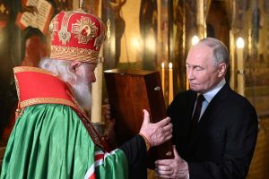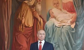 Putin kenshi agaragara mu ruhame yitabira amasengesho ya Pasika no koga mu mazi akonje ku munsi wa Epiphany nk’ikimenyetso cy’ukwemera kwe. Putin yakunze kuvuga ko “nta gihugu gishobora kubaho kitagira indangagaciro zishingiye ku myemerere,” ndetse mu biganiro n’abanyamakuru no mu mihango ya Leta i Kremlin yemeje ko intambara ya Ukraine ari “God’s will” (ugushaka kw’Imana) ndetse akayita “holy mission” (igikorwa cyera) cyo kurengera igihugu.