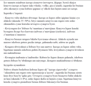 RBC yagaragaje ibimenyetso bikunze kugaragara ku bazinyoye, birimo kuruka cyane, kubabara mu nda, guhuma by’agateganyo no gucika intege, byose bigaragaza ububi bwazo ku buzima. Ni yo mpamvu yasabye abaturage kwirinda kuzinywa no guhitamo inzoga zemewe n’amategeko, zifite ibirango by’ubuziranenge.