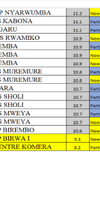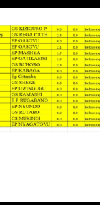 65 nibo batagira moitie hakaba hari n’ababonye make cyane: zero ku kigo cya Muhoza ya 2 mu karere ka Musanze na HVP Gatagara mu Karere ka Nyanza ifite 4%.
